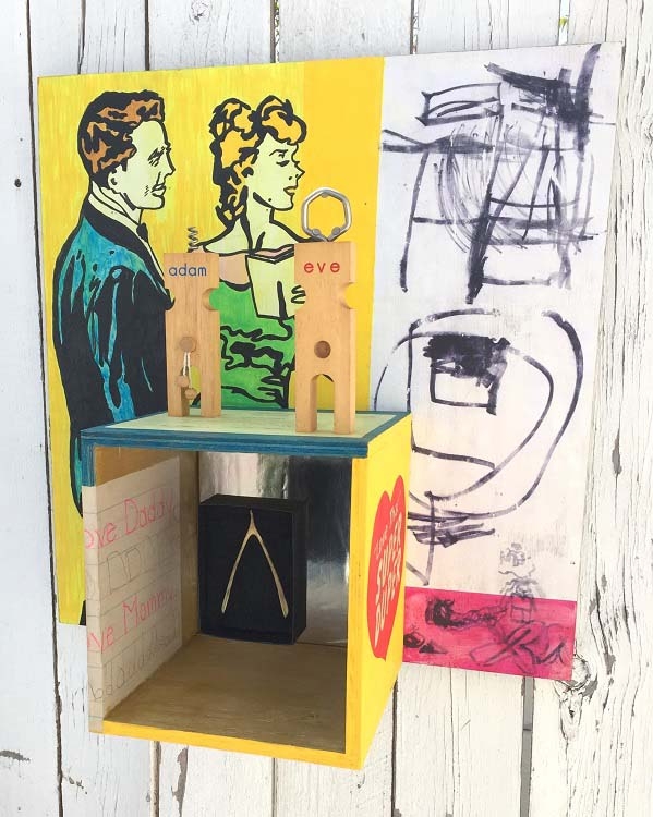NO RESTRAINT is an art exhibition, curated by Kristine Schomaker. This exhibition focuses on artists who explore a wide range of materials in their art practice. Their work extends beyond the traditional mediums. Works chosen for this exhibition show influences from Dada, Arte Povera, Pop Art, Conceptual Art, Assemblage, Process Art and more. Artists featured in the ARK Gallery are: Arezoo Bharthania, Debbie Carlson, Gina M, Greg Schenk, Renee Tanner, Janet Milhomme, Jeff Iorillo, Kate Carvellas, Katrina McElroy, Kirk Miller, Leah Knecht, Leonard D Greco Jr, Lois Keller, Marthe Aponte, Nancy Spiller, Rain Lucien Matheke, Samuelle Richardson, Scott Froschauer, Stacey Wexler, Tamara Valdry, and Tom Lasley.